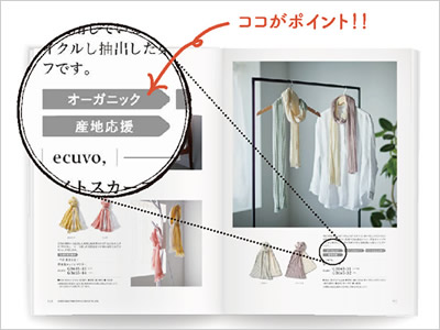 ![]() ナチュラル系の雑誌のようなおしゃれな誌面で、商品を選んでいる間も心がほぐれます。 |